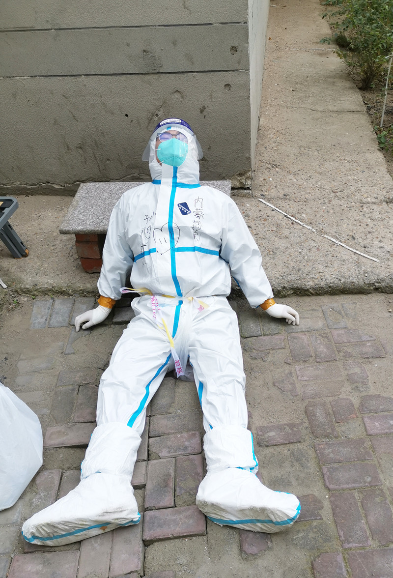 每日早晨5點(diǎn)起床,6點(diǎn)開始入戶進(jìn)行核酸檢測(cè)信息登記,之后再將領(lǐng)取的生活物資發(fā)放到每一戶住戶,有時(shí)還會(huì)承擔(dān)一些消殺工作,偶爾還會(huì)幫助集中隔離人員照顧家里面的小貓小狗。穿著密不透風(fēng)的防護(hù)服,每天要堅(jiān)持持續(xù)工作10個(gè)小時(shí)以上。