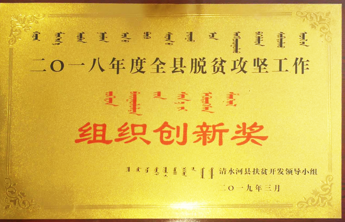 呼和浩特市清水河縣委 縣政府為我院頒發(fā) 社會(huì)事業(yè)愛心奉獻(xiàn)先進(jìn)集體及2018年度全縣脫貧攻堅(jiān)組織創(chuàng)新獎(jiǎng)