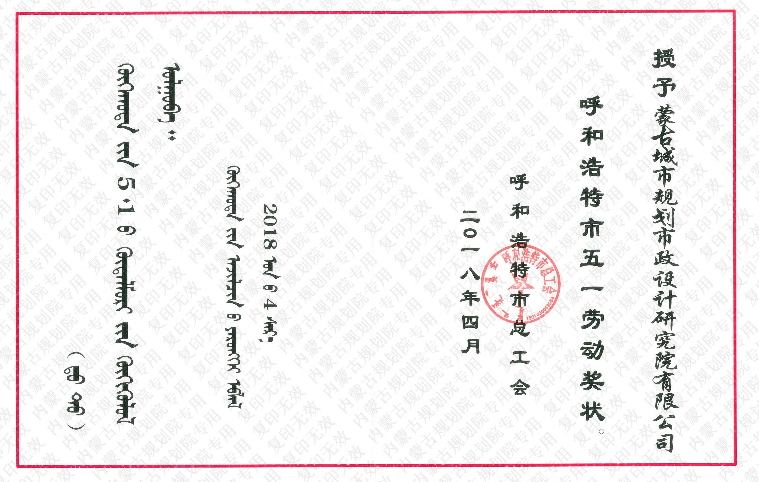 呼和浩特市五一勞動獎