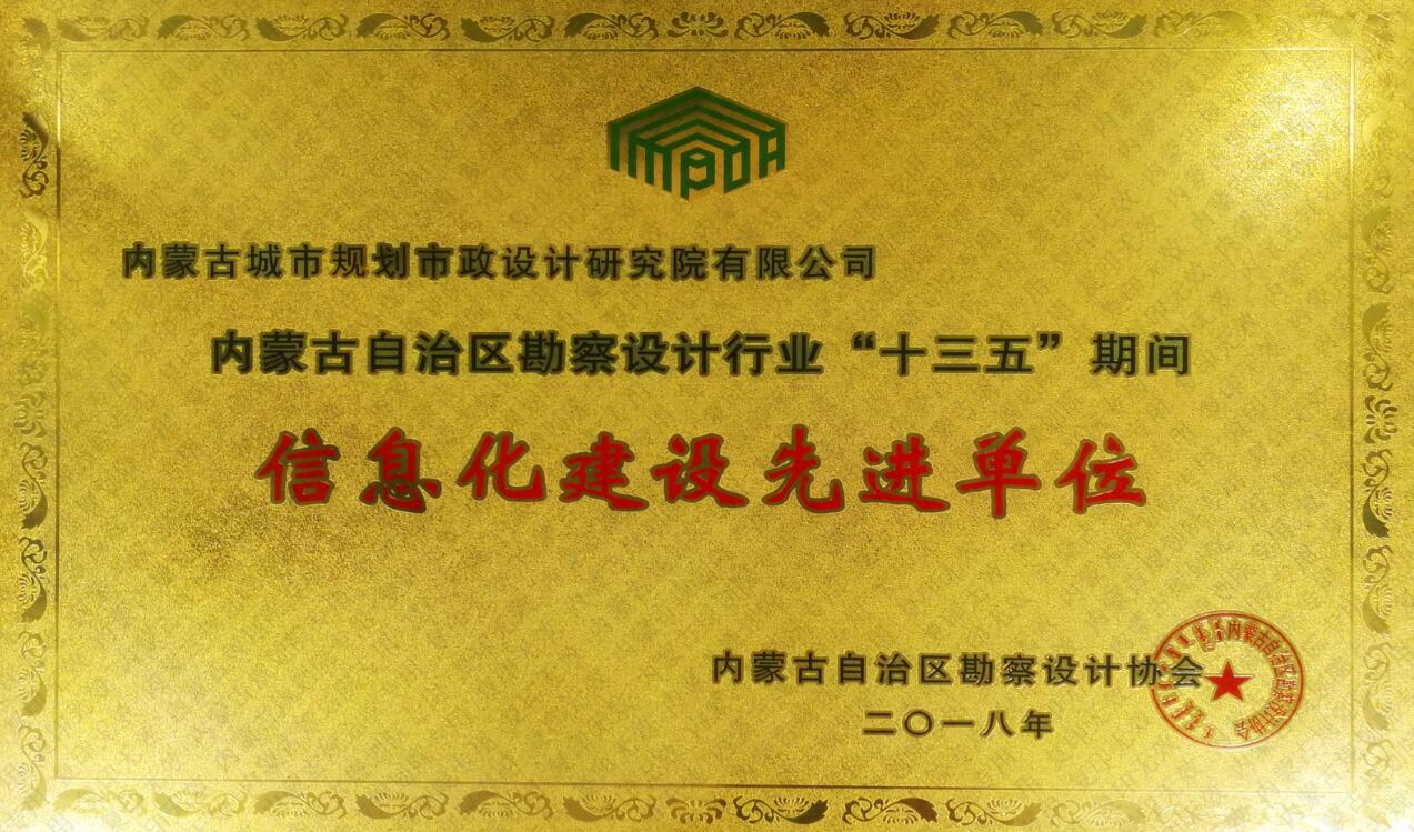 內蒙古自治區(qū)勘察設計行業(yè)“十三五”期間信息化建設先進單位